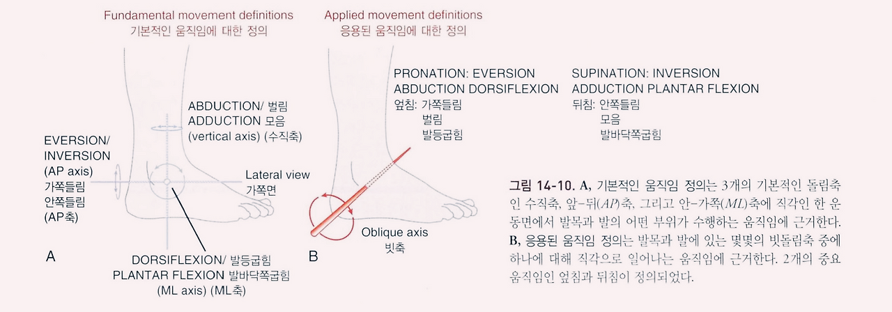 To compensate for this limitation, a second terminology, applied terminology, has been developed to more accurately describe the complex movements of the ankle and foot. This is intended to describe movements that occur perpendicular to the oblique axis of rotation.