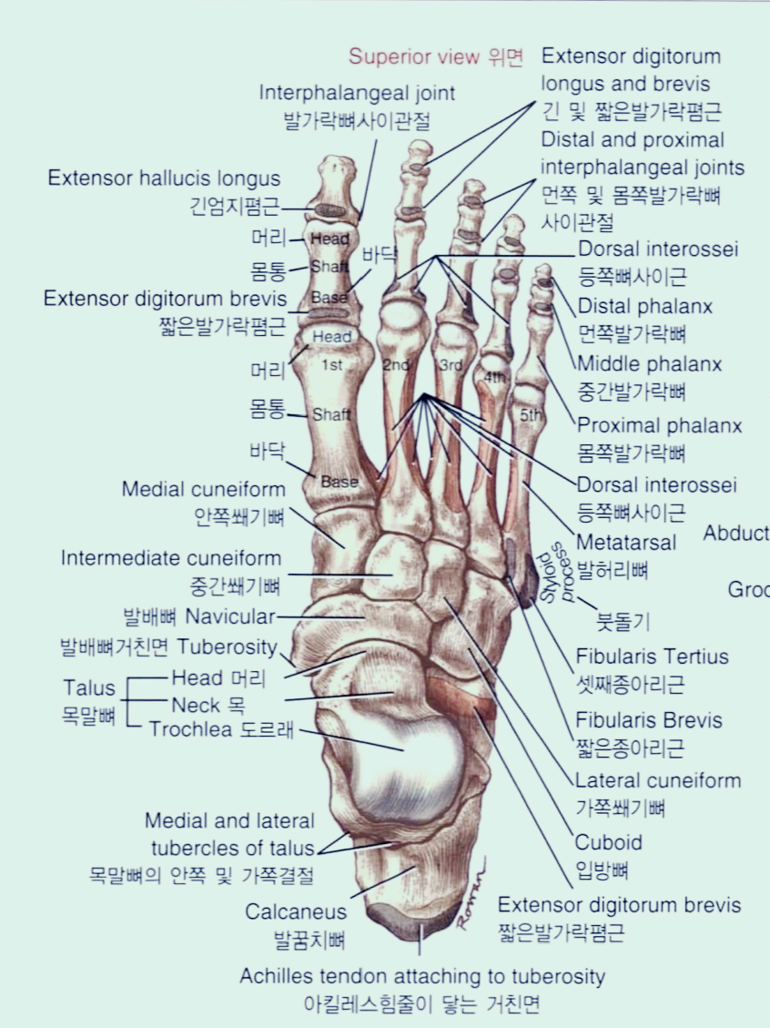 Like the human hand, the foot has a total of 14 toe bones (phalanges), which are important structures located on the furthest side of the foot. Each of the four toes on the lateral side is made up of three toe bones: the proximal, middle, and distal toe bones.