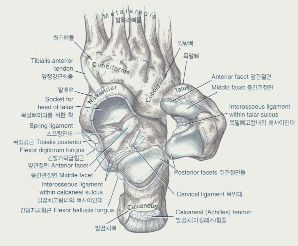 The posterior facet, which is concave and egg-shaped, has the largest area of the three articular facets. Functionally, these three articular facets articulate with three corresponding articular facets on the dorsal (upper) surface of the heel bone, forming an important structure called the subtalar joint. The talar sulcus is a deep groove that runs obliquely between the anterior-medial and posterior articular surfaces.